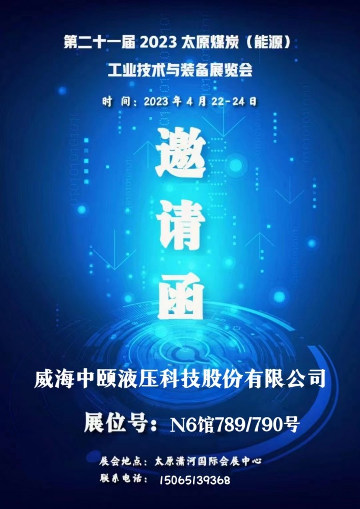 第二十一屆2023太原煤炭(能源)工業(yè)技術(shù)與裝備展覽會暨中國太原煤礦智能化創(chuàng)新技術(shù)高峰論壇,山西?太原瀟河國際會展中心4月22-24日舉行,威海中頤液壓科技股份有限公司展位號N6館789和790號誠邀各界領(lǐng)導蒞臨指導!